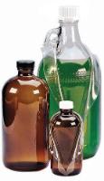 Safety Coated Bottles, Clear, With Metal Foil Lined Cap, 16oz^ Screw cap size: 28-400. Metal foil liners are generally more resistant to organic solvents. Safety coated bottles are coated with PVC-based plastisol to help resist breakage and protect against broken glass.