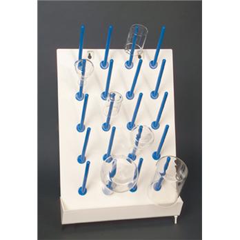 Plastic draining rack excellent for drying tubes and bottles. The back plate has 20 holes into which pegs are tightened. Bottom features a wastewater tray and drai