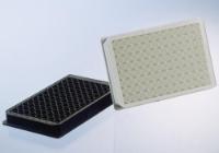 384 Well Plate^ Polystyrene, flat bottom, non-binding well plate. Black. 10 plates per pack, 4 packs per case. (40 plates per case).