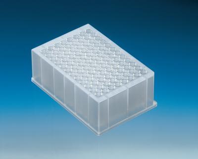 96-Well Plate^ Hirschmann 96-well plate with loose glass inserts.