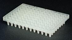 96-Well Segmented PCR Plate^ Ideal for thermal transfer applications. Made of 99.9% pure virgin polypropylene. Ultra-thin walls accelerate heat transfer. Certified RNase-, DNase- and pyrogen-free. Volume: 0.2mL. Color: clear. PCR is a patented process of Hoffmann-La Roche. Requires a license.