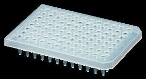 96-Well PCR Plate^ For thermal transfer applications. 99.9% pure virgin polypropylene. Ultra-thin walls accelerate heat transfer. Certified RNase-, DNase- and pyrogen-free to ensure purity. Volume: 0.2mL. Clear. Sterile. PCR is a patented process of Hoffmann-La Roche. Requires a license.