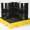 4-Drum (In-Line) Spill Containment Platform^ Has 238L spill capacity. 100% polyethylene. Translucent tub is safety yellow with black grating supports. Grating has 4.4cm square openings and removes easily. 3628kg load capacity. 269.2Lx76.8Wx17.1Hcm. Meets EPA 40 CFR 265.174 requirements.