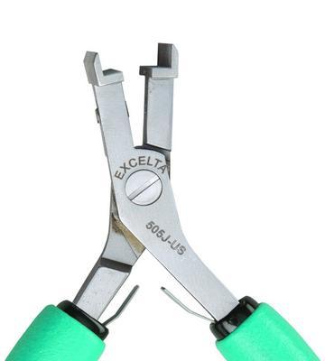 20 pin I.C. Handling Pliers^ 5in Tool designed to insert or extract 20 pin IC packages. Adjustable set screw allows the jaws to be set from .300in to .350in to handle various package sizes.