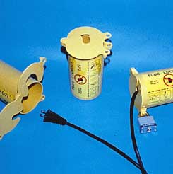 Plug Lockout^ Prevents machinery from being plugged in during cleaning and maintenance. Locks out any electrical plug up to 7.62x13.97cm with a maximum cord diameter of 3.81cm. Bright yellow thermoplastic. Visual warning when in use. Two hinged over-plates accommodate various cord diameters.