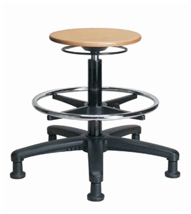 Fisherbrand™ Wood Stools in Chrome are height adjustable for 42 in. work surfaces and feature 360-degree control mechanisms and chrome adjustable foot rings. 7-ply furniture grade hardwood with natural finish offers a classic look and feel.
