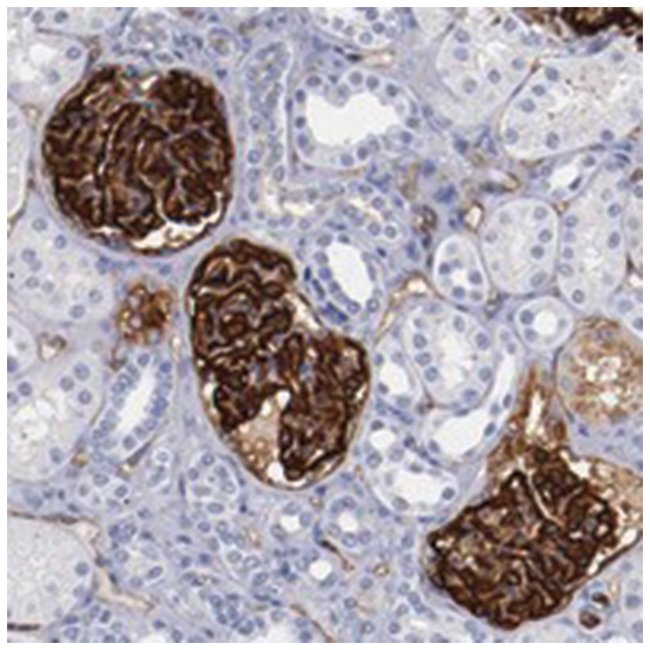 This gene encodes a member of the sialomucin protein family. The encoded protein was originally identified as an important component of glomerular podocytes. Podocytes are highly differentiated epithelial cells with interdigitating foot processes covering the outer aspect of the glomerular basement membrane. Other biological activities of the encoded protein include: binding in a membrane protein complex with Na /H exchanger regulatory factor to intracellular cytoskeletal elements, playing a role in hematopoetic cell differentiation, and being expressed in vascular endothelium cells and binding to L-selectin. [provided by RefSeqSequence: LPETMSSSPTAASTTHRYPKTPSPTVAHESNWAKCEDLETQTQSEKQLVLNLTGNTLCAGGASDEKLISLICRAVKATFNPAQDKCGIRLASVPGSQTVVVKEITIHTKLPAKDVYERLKDKWDELKEAGVSDMKLGD
