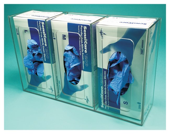 Holders are constructed of break-resistant PETG and can be mounted horizontally or vertically. Each glove box has its own individual compartment for easy replacement of empty boxes.