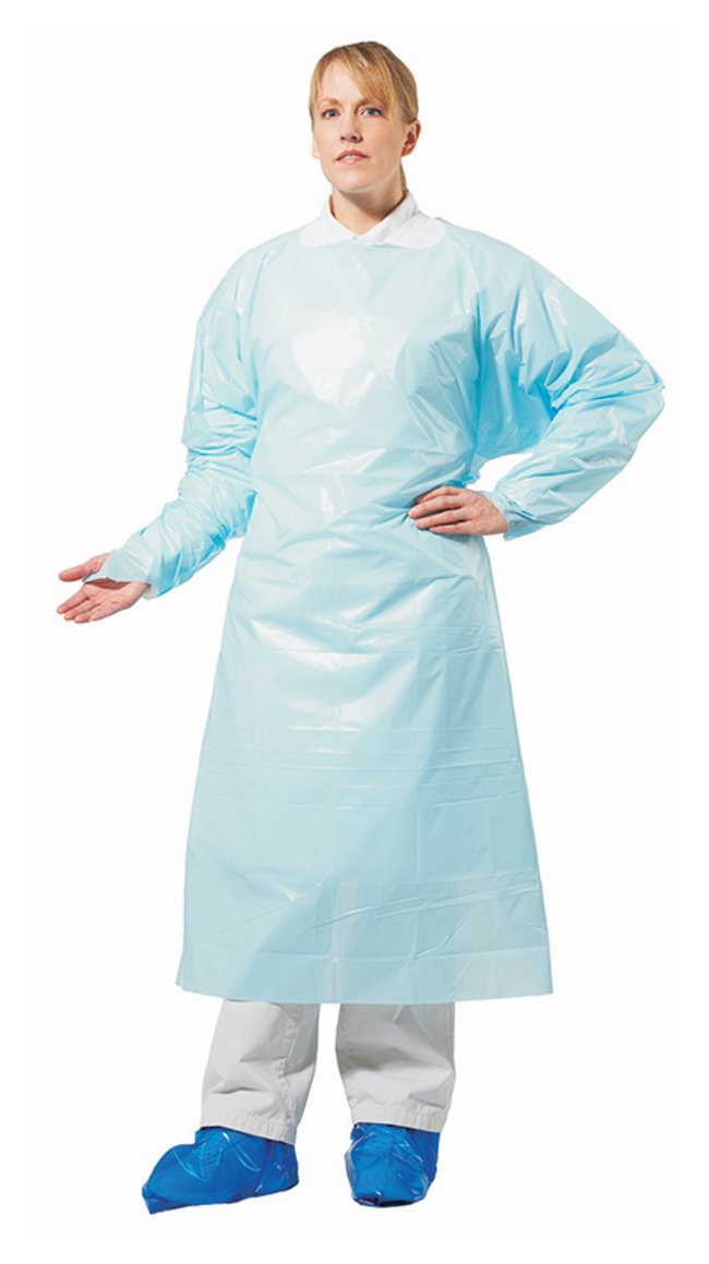 Lightweight, single-layer, low-density polyethylene gown for clinical and laboratory settingsHeat-sealed seam is behind sleeves—minimizes chance of contamination passing through.Full-length wraparound with open back tailored to eliminate excess materialTear-away collar for quick and easy removalThumb loop on sleeve keeps cuffs under gloves, enhancing leak protectionGowns are folded for quick shake-out and easy donningPowder blue with smooth matte finishOrder InfoPacked individually or bulk in dispenser box.ComplianceComplies with FDA regulations. Successfully tested for liquid and aerosol blood resistance under ASTM™ F 1670 Synthetic Blood Penetration Resistance and ASTM 1671 Bacteriophage Penetration Resistance.