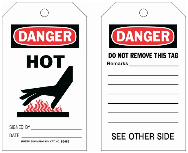Polyester Encased Paper Tag: DANGER HOT SIGNED BY: DATE:, Pack of 10