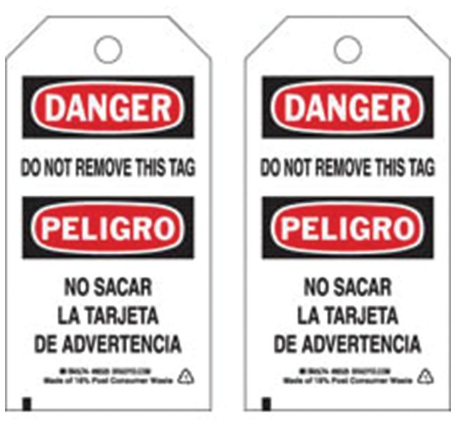 Polyester Encased Paper Tag: DANGER/PELIGRO DO NOT REMOVE THIS TAG NO SACAR LA TARJETA DE ADVERTENCIA, Pack of 10