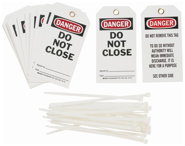 Polyester Tag: DANGER DO NOT CLOSE SIGNED BY: DATE:, Pack of 25