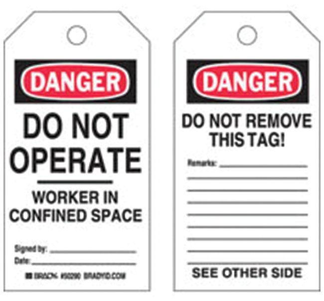 Polyester Tag: DANGER DO NOT OPERATE WORKER IN CONFINED SPACE SIGNED BY: DATE:, Pack of 25