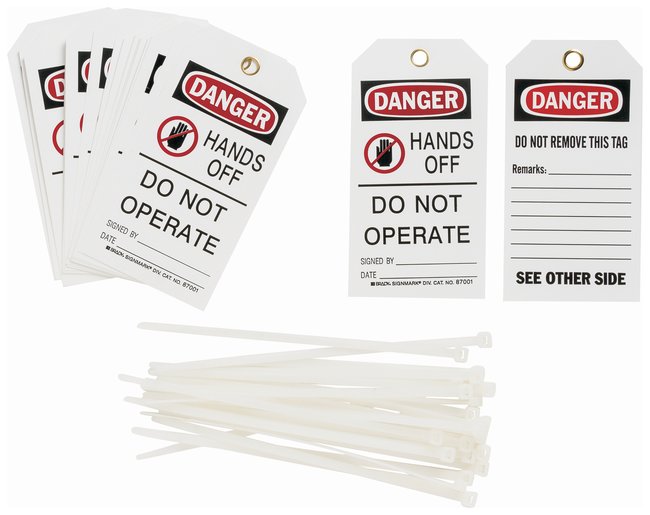 Polyester Tag: DANGER HANDS OFF DO NOT OPERATE SIGNED BY: DATE:, Pack of 25