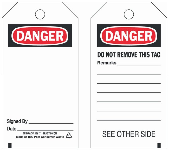 Polyester Tag: DANGER SIGNED BY: DATE:, Pack of 25