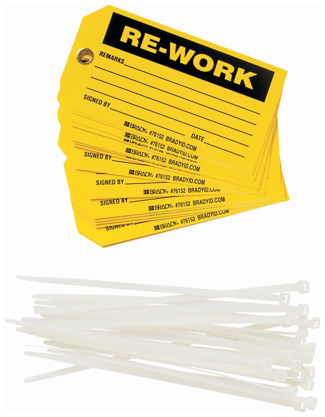 Identify facility equipment to your exact specifications. Brady™ Polyester Tags RE-WORK are durable one-sided tags with a write-on area that accepts most marking pens.