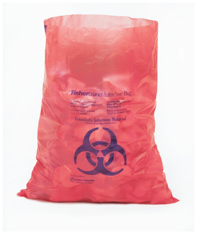 Strong and leak-resistantPrinted with biohazard symbol and text in English and SpanishSupplied with twist tie closure