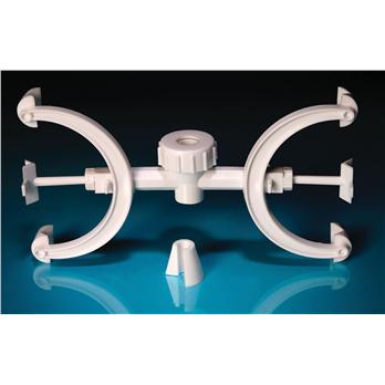 These clamps are molded in polypropylene, making them completely corrosion proof. The spring loaded jack in the middle provides a vice-like grip to the burette and prevents in from slipping. Two tapered wedges are provided to ensure firm grip on the rods having diameter 0.5 " or3/8 ". Available as a double or a single clamp.