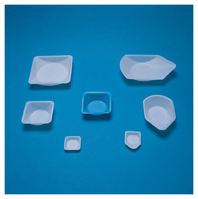 Fisherbrand™ Polystyrene Antistatic Weighing Dishes are contaminant-free, antistatic, and biologically inert. Disposable dishes are ideal for weighing, dispensing, or storing applications.Ideal for weighing static-affected materials.Resist dilute acids, aqueous solutions, alcohols, and basesFlat bottoms resist tipping Made from 12mil thick polystyrene—20% thicker than most dishes on the market today—for better strength, stability, and handling easePour boats feature a molded spout for convenient pouring and dispensing