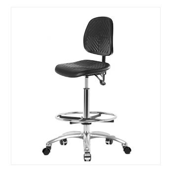 Polyurethane High Bench Height Chair, Medium Back, with Chrome Base, with Tilt, No Arms, Chrome Casters, Each
