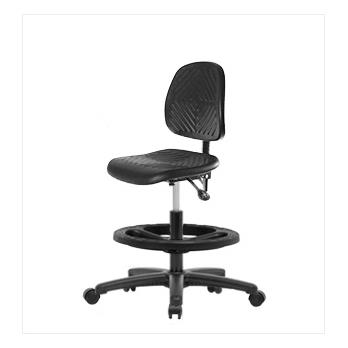 Polyurethane Medium Bench Height Chair, Medium Back, with Black Nylon Base, No Tilt, Adjustable Arms, Black Foot Ring, Glides, Each