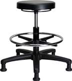 Fisherbrand™ Polyurethane Stools in Chrome are height adjustable for 36 in. work surfaces and feature 360-degree control mechanisms and chrome adjustable foot ring. Self-skinning polyurethane is chemical, soil, and puncture resistant and easily cleaned making it ideal for clean room environments.