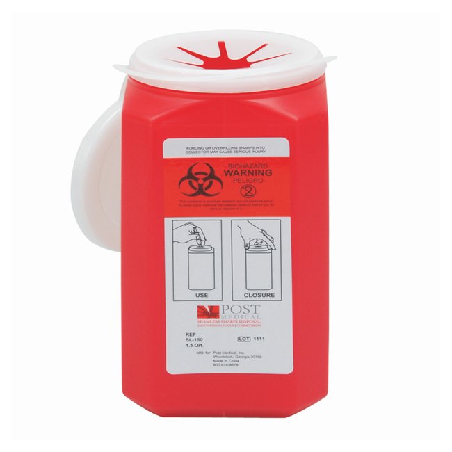 For use in patient rooms and all hospital departments including laboratory. Thick-walled, puncture-resistant sharps containment systems provide safe, convenient and affordable site of origin sharps disposalVertical drop disposal minimizes excessive handling; reduces risks associated with horizontal “mail-box” type disposalOnce self-contained screw cap is secured and locked, leakage of fluids during handling, transport and disposal is virtually eliminated1.0, 1.5 and 2.5 gal. ContainersCan be used freestanding or with metal stands or cabinetsBulk 3.5 and 6 gal. ContainersDesigned for freestanding use onlyComplianceMeets OSHA requirements.