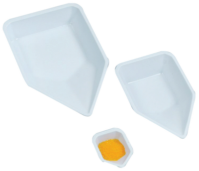 Samples are easily dispensed with the pour spout design without flexing the dish., These flat-bottomed dishes are made from 0.3 mm thick polystyrene for better strength, stability, and handling., 02_BulletPoint: Flat bottom avoids tipping | Temperature resistant to 70°C | Maximize recovery of typically expensive chemicals | Biologically inert and resistant to dilute and weak acids, aqueous solutions, alcohols, and bases, Color: White, Medium, Cat. No.: 10803-160, W×D×H: 83 x 132 x 26 mm (3.2 x 5.1 x 1"), Samples are easily dispensed with the pour spout design without flexing the dish., These flat-bottomed dishes are made from 0.3 mm thick polystyrene for better strength, stability, and handling., 02_BulletPoint: Flat bottom avoids tipping | Temperature resistant to 70°C | Maximize recovery of typically expensive chemicals | Biologically inert and resistant to dilute and weak acids, aqueous solutions, alcohols, and bases, Color: White, Large, Cat. No.: 10770-440, W×D×H: 108 x 183 x 26 mm (4.2 x 7.2 x 1"), Samples are easily dispensed with the pour spout design without flexing the dish., These flat-bottomed dishes are made from 0.3 mm thick polystyrene for better strength, stability, and handling., 02_BulletPoint: Flat bottom avoids tipping | Temperature resistant to 70°C | Maximize recovery of typically expensive chemicals | Biologically inert and resistant to dilute and weak acids, aqueous solutions, alcohols, and bases, Color: White, Small, Cat. No.: 10803-140, W×D×H: 43 x 58 x 13 mm (1.6 x 2.2 x 0.5"), Samples are easily dispensed with the pour spout design without flexing the dish., These flat-bottomed dishes are made from 0.3 mm thick polystyrene for better strength, stability, and handling., 02_BulletPoint: Flat bottom avoids tipping | Temperature resistant to 70°C | Maximize recovery of typically expensive chemicals | Biologically inert and resistant to dilute and weak acids, aqueous solutions, alcohols, and bases, Color: White, Large, Cat. No.: 10803-166, W×D×H: 108 x 183 x 26 mm (4.2 x 7.2 x 1"), Samples are easily dispensed with the pour spout design without flexing the dish., These flat-bottomed dishes are made from 0.3 mm thick polystyrene for better strength, stability, and handling., 02_BulletPoint: Flat bottom avoids tipping | Temperature resistant to 70°C | Maximize recovery of typically expensive chemicals | Biologically inert and resistant to dilute and weak acids, aqueous solutions, alcohols, and bases, Samples are easily dispensed with the pour spout design without flexing the dish., These flat-bottomed dishes are made from 0.3 mm thick polystyrene for better strength, stability, and handling., 02_BulletPoint: Flat bottom avoids tipping | Temperature resistant to 70°C | Maximize recovery of typically expensive chemicals | Biologically inert and resistant to dilute and weak acids, aqueous solutions, alcohols, and bases, Color: White, Small, Cat. No.: 10770-408, W×D×H: 43 x 58 x 13 mm (1.6 x 2.2 x 0.5"), Samples are easily dispensed with the pour spout design without flexing the dish., These flat-bottomed dishes are made from 0.3 mm thick polystyrene for better strength, stability, and handling., 02_BulletPoint: Flat bottom avoids tipping | Temperature resistant to 70°C | Maximize recovery of typically expensive chemicals | Biologically inert and resistant to dilute and weak acids, aqueous solutions, alcohols, and bases, Color: White, Medium, Cat. No.: 10770-438, W×D×H: 83 x 132 x 26 mm (3.2 x 5.1 x 1")