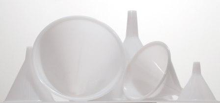 Set of five unbreakable, polypropylene solvent addition funnels for use with chromatography columns of various sizes. The unique closed-end design facilitates gentle addition of solvent to the column, Perforated funnel stem permits solvent to pour down the column wall without disturbing the top layer of silica gel, Approximate dimensions are provided below