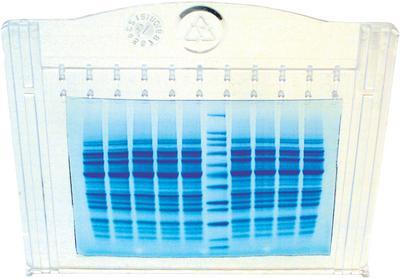 Tris Glycine iGel, 8%^ For bio-separation research. Made in a gel cassette with preformed, solid sample wells. Compatible with most popular 10cm tanks. Shelf life: 4 months. Capacity: 50um.