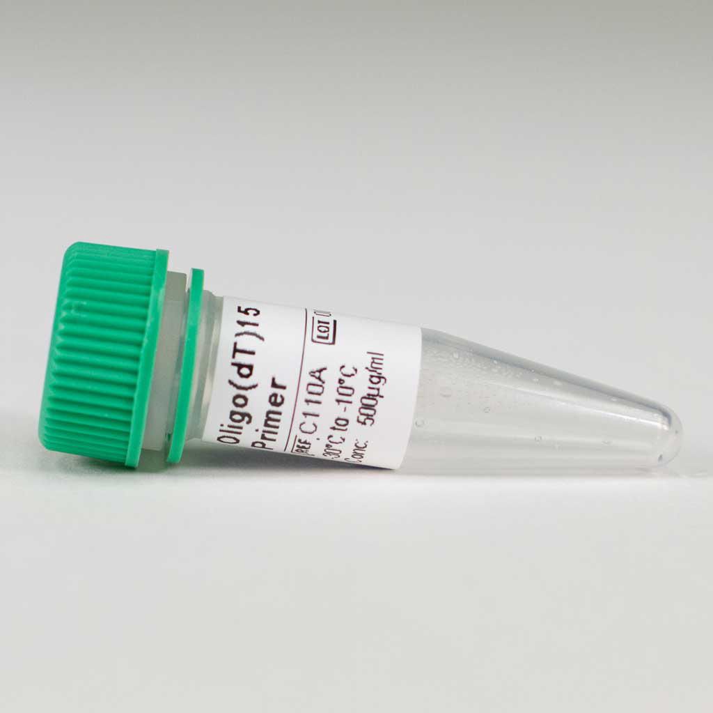 Oligo(dT)15 Primer, 20ug^ Store at -20[degree]C. The Oligo(dT)15 Primer, EcoR I Adaptors and Random Primers are also available as components of the Universal RiboClone cDNA Synthesis System.