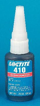 PRISM* 410* Black Toughened Instant Adhesive^ Ethyl adhesive bonds rubbers, metals, and plastics for use in difficult environments. Peel- and shock-resistant. Fills gaps up to 0.020cm. Temperature range: -54 to 107[degree]C. Fixture time: 90 seconds. Viscosity: 3500cP. Size: 20g bottle.