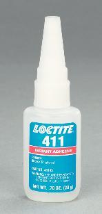 PRISM* 411* Clear Toughened Instant Adhesive^ High-viscosity, toughened ethyl adhesive bonds rubber, plastic, and metal. Peel- and shock-resistant. Fills gaps up to 0.020cm. Temperature range: -54 to 99[degree]C. Fixture time: 30 seconds. Viscosity: 5000cP. Size: 20g bottle.