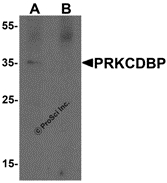 Peptide PRKCDBP^ Peptide PRKCDBP, location: 17 amino acid peptide near the center of human PRKCDBP, species: Human, buffer: PBS pH 7.2 (10 mM NaH2PO4, 10 mM Na2HPO4, 130 mM NaCl) containing 0.1% bovine serum albumin and 0.02% sodium azide, concentration: 200 ug/ml.