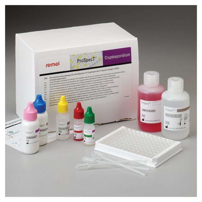 Rapidly detect Crytosporidium specific antigens (CSA) in fresh or preserved fecal specimens using Thermo Scientific™ ProSpecT™ Cryptosporidium Microplate Assay.Manage your resources, increase productivity and improve workflow efficiency with this direct, qualitative enzyme immmunoassay for the detection of Crytosporidium. It combines excellent sensitivity/specificity, a common procedure with no indeterminate range, plus flexible specimen transport options. Excellent clinical performanceCary Blair transport option which saves a dilution stepResults within 100 minutesRoom temperature incubationTrue colorless negativesProSpecT Cryptosporidium is part of the most comprehensive line of microplate assays available for enteric infectious disease testing. The ProSpecT family of tests have a common format, common procedures, and common reagents, maximizing operational efficiency, productivity and throughput. ProSpecT Cryptosporidium provides same-day antigen detection that is easy-to-use, flexible and provides the power to do more with less. Not all products are available for sale in all territories. Please inquire. Remel™ and Oxoid™ products are now part of the Thermo Scientific brand, combining powerful manual, semi-automated and fully automated test products and a comprehensive line of media and diagnostic products to offer a complete, end-to-end solution to quickly deliver the products you need and the quality results your laboratory depends on.