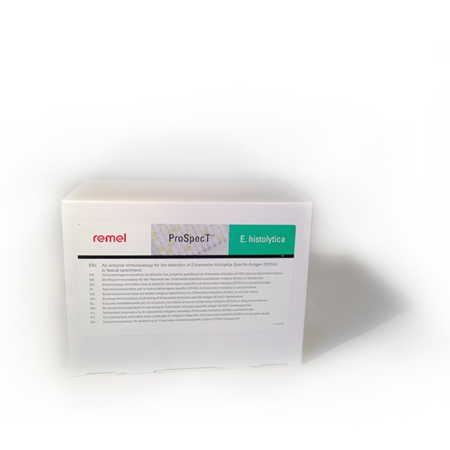 Rapidly detect Entamoeba histolytica specific antigen in fresh or preserved human fecal specimens using Thermo Scientific™ ProSpecT™ Entamoeba histolytica Microplate Assay.Manage your resources, increase productivity and improve workflow efficiency with this direct, qualitative enzyme immmunoassay for the detection of Entamoeba histolytica. It combines excellent sensitivity/specificity, a common procedure with no indeterminate range, plus flexible specimen transport options. Excellent clinical performanceCary Blair transport option which saves a dilution stepResults within 100 minutesRoom temperature incubationTrue colorless negatives ProSpecT Entamoeba histolytica is part of the most comprehensive line of microplate assays available for enteric infectious disease testing. The ProSpecT family of tests have a common format, common procedures and common reagents, maximizing operational efficiency, productivity and throughput. ProSpecT Entamoeba histolytica provides same-day antigen detection that is easy-to-use, flexible and provides the power to do more with less. Not all products are available for sale in all territories. Please inquire. Remel™ and Oxoid™ products are now part of the Thermo Scientific brand, combining powerful manual, semi-automated and fully automated test products and a comprehensive line of media and diagnostic products to offer a complete, end-to-end solution to quickly deliver the products you need and the quality results your laboratory depends on.