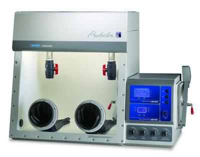 Protector Combination Filtered/Auto-Pressure Controlled Atmosphere Glove Box^ Leaks 1 x 10-6 ml/sec. stainless steel liner, pressure relief bubbler, in/out hepa filters, bag-in/bag-out filter disposal, blower w/ speed control, 9[% neoprene gloves. 115v/50/60hz