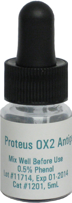 Antigen^ Proteus OX2 Febrile Antigen, intended for the detection of bacterial agglutinins associated with a bacterial infection, For professional use only, Size: 5 mL Vial