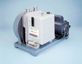 CHEMSTAR* Vacuum Pump^ Handles corrosive gases to pressures below 1 torr. High contamination tolerance and inert components. 1/3hp motor operates at 580rpm. Free air displacement: 25L/min. Tubing: 11.1mm ID. ISO flange size: NW16. Oil capacity: 0.59L. 45.2Lx22.9Wx32Hcm. Weight: 30.8kg. 115V, 60Hz.