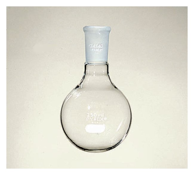 With full length joints, but with short necks.The 100, 250, and 500 mL flasks are replacement parts for organic chemistry kits (Cat. Nos. 6949 through 6949K).This product(s) resides on a Fisher Scientific GSA or VA contract. If you are viewing this page as a nonregistered user, the price(s) displayed is List Price. To view your GSA or VA contract pricing, log in using your account number, or become a registered user by contacting one of our Customer Service teams. You can also view your contract price by searching for this item(s) on GSA Advantage. To place an order, contact Fisher Scientific Customer Service.Order InfoManufactured from No. 7740 borosilicate glass. Normal working temperature, 230°C