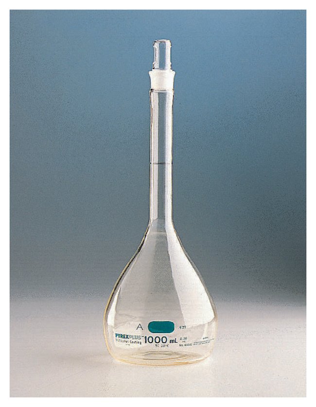 Flask features a protective PVC coating for longer product life and safety. Protective coating helps prevent glass from shattering and reduces spills. Autoclavable (121°C) and resistant to thermal shock. The graduation mark is easy to read. Supplied with standard taper PYREX stopper.For stopper only, see Cat. No. 7650.Warning: Do not place over direct heat or flame. Do not heat above 121°C moist heat or 110°C dry heat.This product(s) resides on a Fisher Scientific GSA or VA contract. If you are viewing this page as a nonregistered user, the price(s) displayed is List Price. To view your GSA or VA contract pricing, log in using your account number, or become a registered user by contacting one of our Customer Service teams. You can also view your contract price by searching for this item(s) on GSA Advantage. To place an order, contact Fisher Scientific Customer Service.