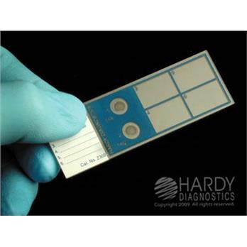 A convenient ready-to-stain control slide that will test both your stain solutions and your staining techniques. Positive and negative stain control organisms are affixed to the circles in each Q-Slide™. Up to four patient specimens (in the squares) may be processed at the same time as the QC organisms.• Q-Slide™ Gram - For your Gram Stain QC. Contains E.coli as a gram-negative control, and a Staphylococcus aureus as a gram-positive control.Hardy’s new Q-Slide™ is a quick and effective way to ensure the quality of reagents used as well as the proficiency of staining technique by laboratory personnel.