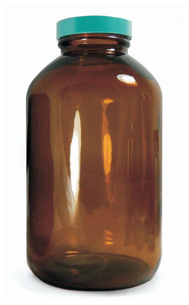 Amber Wide Mouth Packer Bottles, Vacuum and Ionized with Thermoset F217 and PTFE Cap, Case of 12