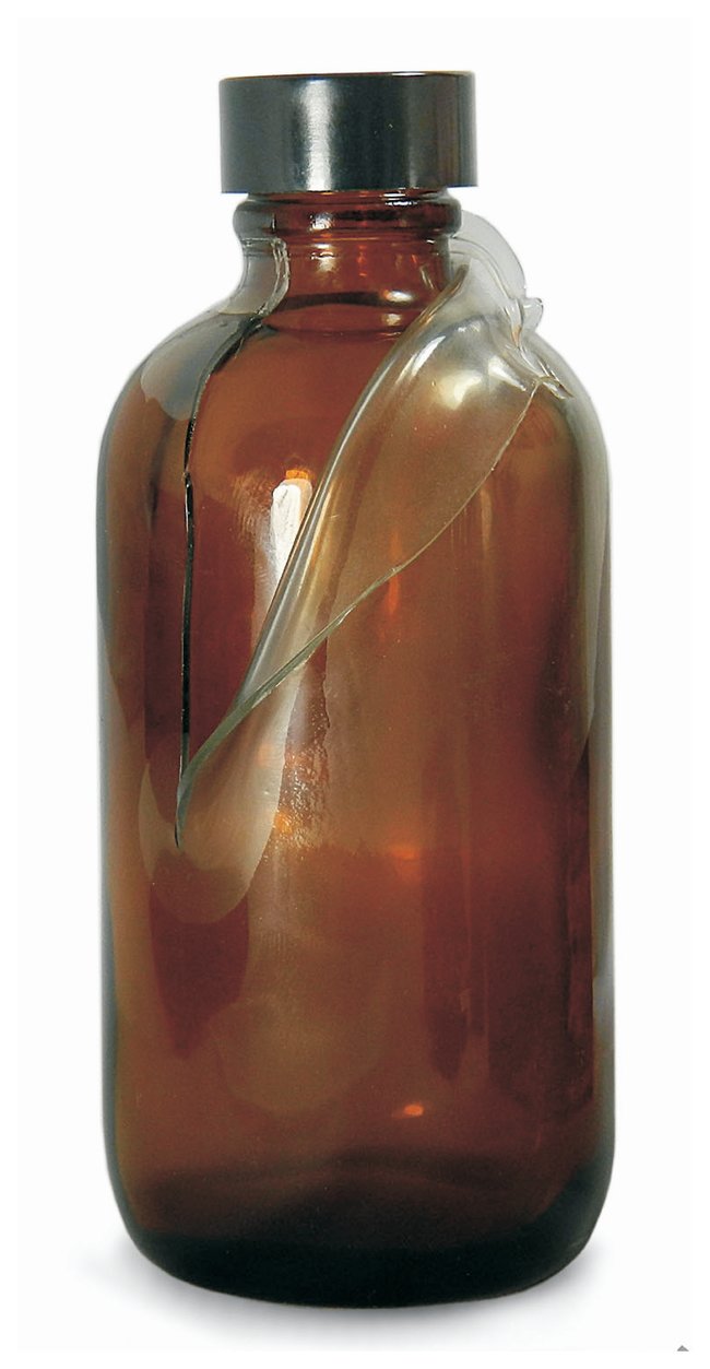 Safety Coated Amber Boston Round Bottles: With Phenolic PTFE Caps, Case of 24