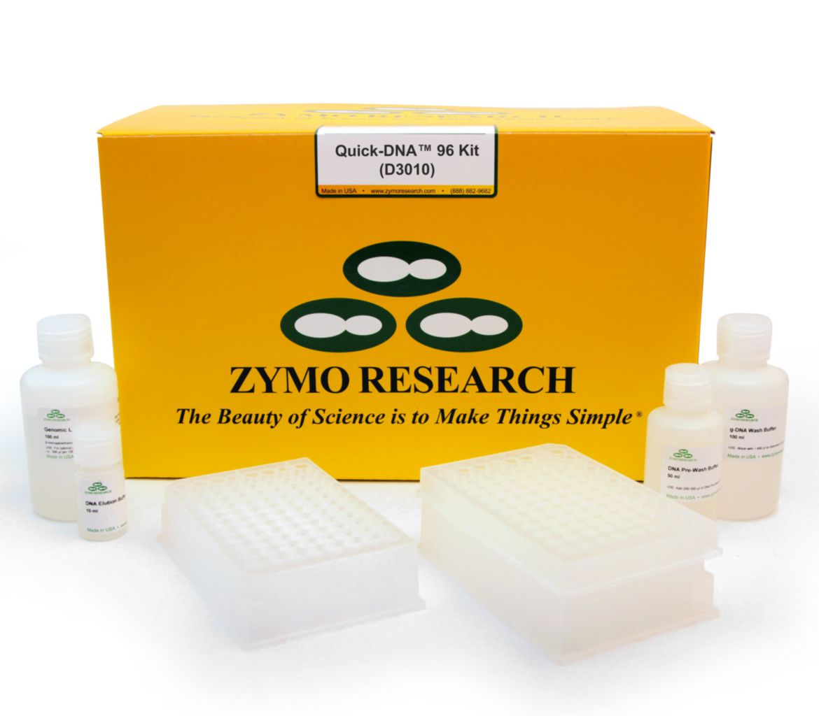Quick-DNA* 96 Kit 4x96 Preps^ Quick-DNA* 96 Kit, Hgh throughput purification of DNA from whole blood, plasma, serum, body fluids, buffy coat, lymphocytes, swabs or cultured cells in less than 25 minutes, Compatible with commonly used anticoagulants, Unique extraction technology, Size: 4x96 Preps