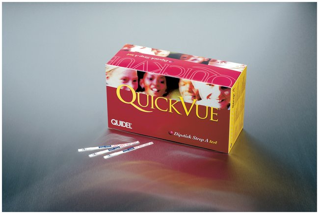 Detects Group A Streptococcal antigen directly from patient throat swab specimens or confirms presumptive Group A Streptococcal colonies recovered from culture. Used as an aid in the diagnosis of Group A Streptococcal infection. Lateral flow immunoassay, using Quidel's patented assay device.