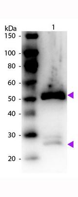 Anti-Mouse IgG, Rabbit Host^ Form: biotin. Size: 1.0mg. Gamma heavy chain specific. Affinity purified antibody. Isolated by separating monospecific antibodies from other antiserum proteins and non-specific immunoglobulins by solid phase affinity chromatography.