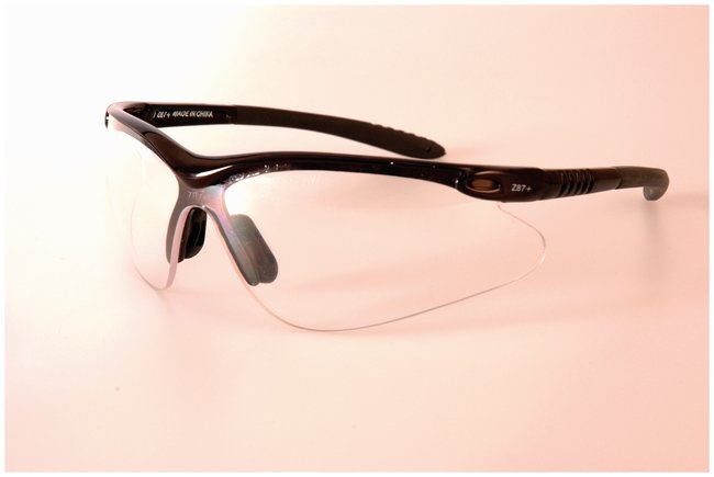 Offers exceptional protection and style at an affordable priceFlared single-lens design provides sleek protectionSoft nose bridge and bayonet-style side arms grip lightly but firmly for a comfortable, confident fitBlack nylon framesComplianceMeets ANSI* Z87.1 and Z80.3 standards.