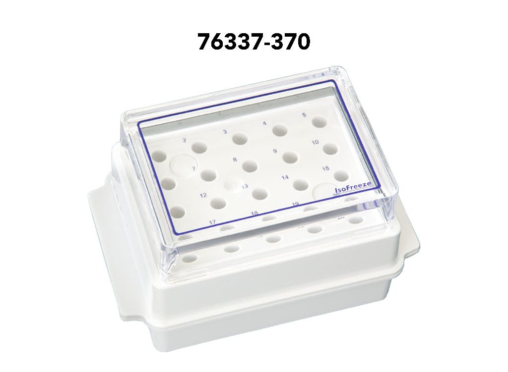 These reversible benchtop chillers hold either 0.5 or 0.65 ml tubes on one side and 1.5 to 2.0 ml tubes on the other., Racks are available in two temperature ranges and can be frozen overnight for maximum duration., 02_BulletPoint: Constructed of polycarbonate | Can maintain cold temperatures for up to four hours | Non-toxic gel fill, Final SAP Desc Link: 6806928, SAP Description Status: Ready, These reversible benchtop chillers hold either 0.5 or 0.65 ml tubes on one side and 1.5 to 2.0 ml tubes on the other., Racks are available in two temperature ranges and can be frozen overnight for maximum duration., 02_BulletPoint: Constructed of polycarbonate | Can maintain cold temperatures for up to four hours | Non-toxic gel fill, Color: Blue, Dimensions: 172×104×108 mm, Cat. No.: 76337-372, For tubes: 20×1.5/2.0 ml, 20×0.5 ml, Final SAP Desc Link: 6806928, SAP Description Status: Ready, These reversible benchtop chillers hold either 0.5 or 0.65 ml tubes on one side and 1.5 to 2.0 ml tubes on the other., Racks are available in two temperature ranges and can be frozen overnight for maximum duration., 02_BulletPoint: Constructed of polycarbonate | Can maintain cold temperatures for up to four hours | Non-toxic gel fill, Color: White, Dimensions: 172×104×108 mm, Cat. No.: 76337-370, For tubes: 20×1.5/2.0 ml, 20×0.5 ml, Final SAP Desc Link: 6806928, SAP Description Status: Ready