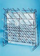 Vinyl-Coated Steel Wire Drying Rack^ For draining and drying test tubes and other laboratory glassware. Used flat, hung on wall, or upright on table or sink. Chemical and oil resistant. Holds 90 pieces. Contains seventy-two - 76.2mm pins and eighteen -127mm pins. Dimensions: 47Lx18.4Wx48.3Hcm. Weight: 2kg.